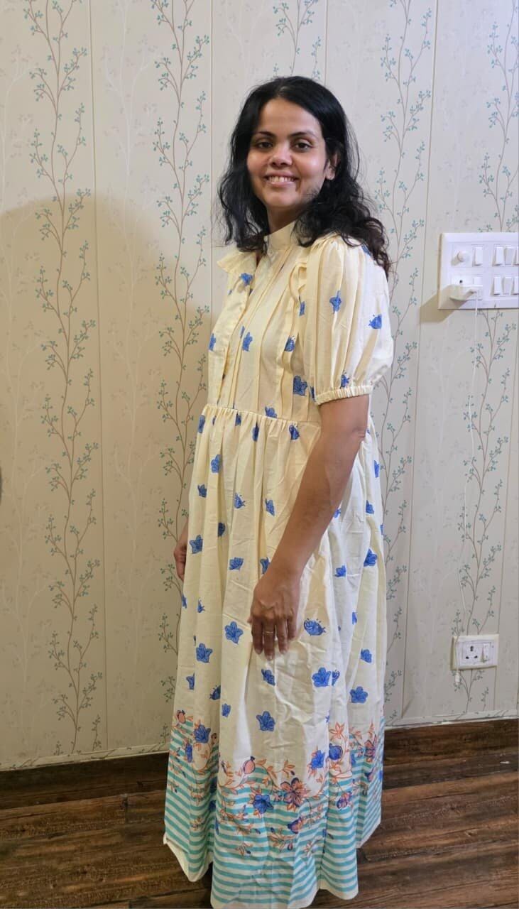 I received the dress this afternoon, Just tried it on. It’s beautiful, loved the embroidery and the big pockets. Thanks a ton. I liked this one for the embroidery mainly and it truly is beautiful in real.